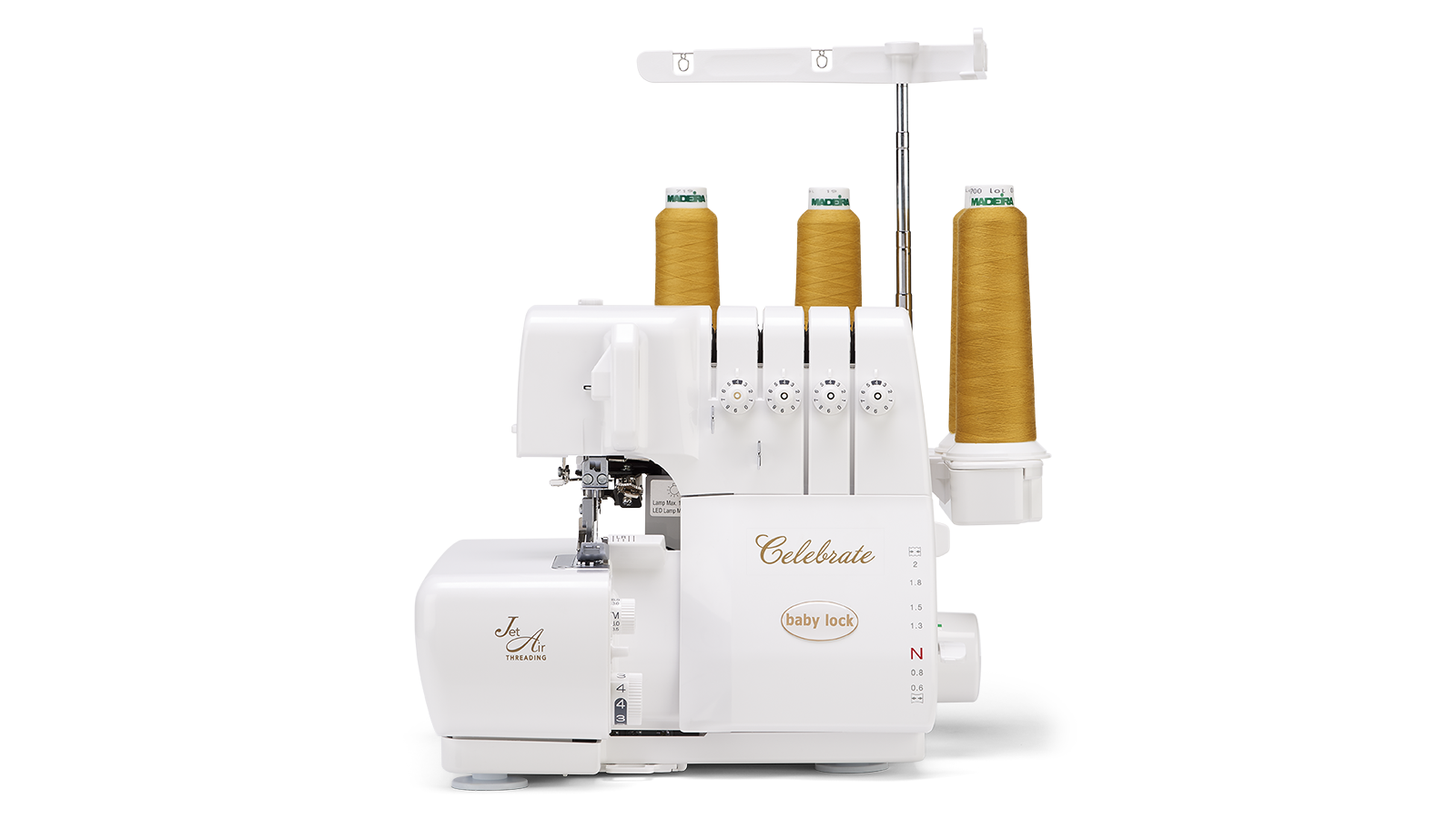 With Jet-Air Threading™ for fast, frustration-free looper threading, adjustable manual tensions, and a full-featured differential feed system, Celebrate adapts smoothly to a wide range of fabrics - from lightweight knits to thicker, loftier materials. Thoughtful details like the built-in needle threading system, higher presser foot clearance, and reliable cutting power keep serging efficient and enjoyable, allowing you to focus on clean finishes, beautiful seams, and the satisfaction of a job well done.