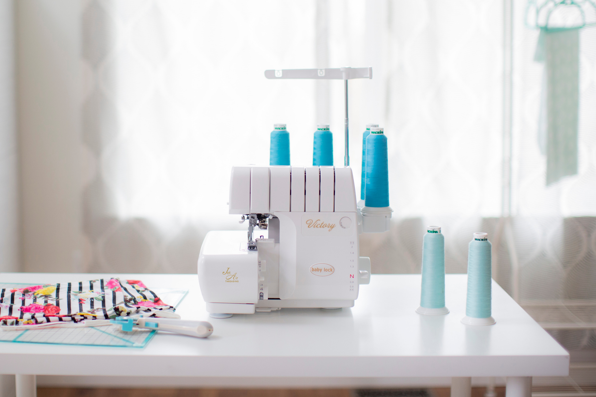 The Baby Lock Victory is designed to help you conquer serging with confidence, combining advanced technology with effortless operation. Featuring Jet-Air Threading™ for the lower loopers and Automatic Thread Delivery™, the Victory eliminates complicated threading paths and tension adjustments, so you can focus on stitching instead of setup.