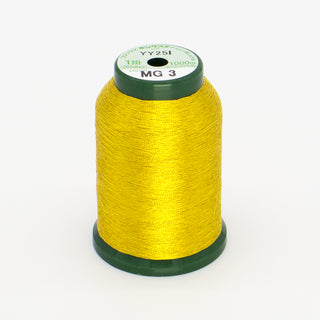 KingStar Metallics have a polyester core and are wrapped in rice paper with a metallic finish. The high-quality thread doesn't kink as it unwinds from the spool and runs smoothly through the thread pre-tensioners, resulting in fewer thread breaks and higher quality embroidery.