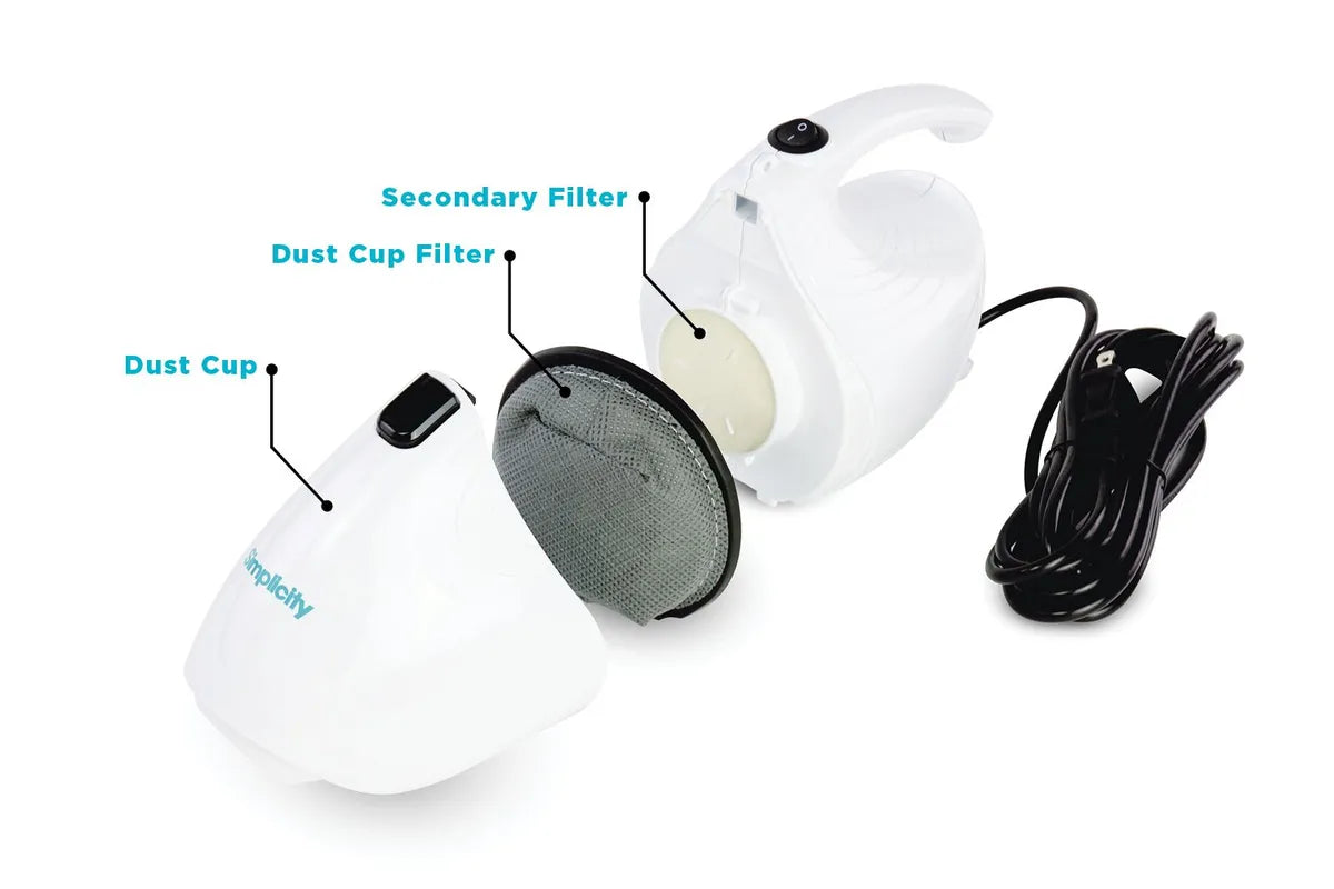 A mighty hand-held bagless vacuum, the Simplicity Flash quickly whisks away dirt, crumbs and many other small, dry messes. This small but powerful 600-watt handheld vacuum includes a 14 foot long power cord for plenty of portability and a removable and washable dustcup. The Flash also includes a flexible hose and many handy tools including an upholstery brush with nylon bristles, a crevice tool with brush, a dusting brush and a flexible hose, perfect for cleaning hard-to-reach spaces.